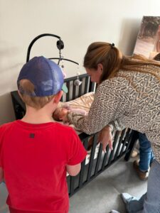 Juf Vera nodigde heel SO Blauw bij haar thuis uit om Noé te komen bewonderen en lekker te smikkelen. We mochten kijken hoe Noé lag te slapen, hoe ze het flesje kreeg, en we hebben geholpen met een schone luier geven. Noé en alle kinderen uit SO Blauw waren wel moe van het bezoekje. Noé ging lekker slapen in de box en sommige leerlingen deden een hazenslaapje in de bus terug. Ze namen een luiertje mee (gelukkig wel een schone) om mee te spelen in de huishoek op school.
