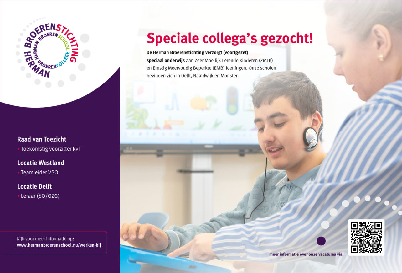 Met ingang van schooljaar 2026-2027 zijn wij voor de Herman Broerenstichting op zoek naar een: